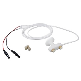 Designed with a practical handle for optimum grip during use. The gold-plated sockets can be used with gold inserts (available as ball or moulded), stainless steel inserts (ball, waffle, moulded) or felts can be used. With the stimulation electrode you receive 2 felts + an additional 10 replacement felts. The extra-flexible white PVC cable has a length of 150cm and is fitted with a 1.5mm TP plug .